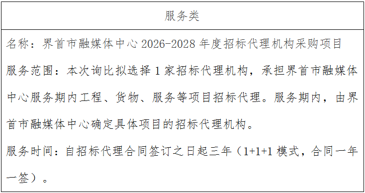 一、项目名称:界首市融媒体中心2026-2028年度招标代理机构采购项目
