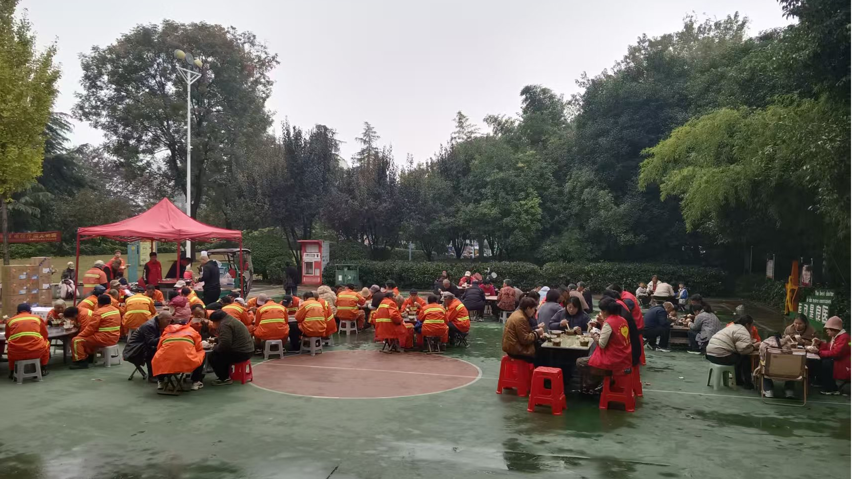 中午时分,大锅菜终于炖煮完成。志愿者们有序地将热气腾腾的菜肴盛进碗中,递到每位居民手中。大家围坐在一起,或坐在临时搭建的餐桌旁,或站在广场的树荫下,边吃边聊,脸上洋溢着幸福的笑容。“这大锅菜味道真地道,有家的感觉!”居民李大妈说,平时大家很少有机会这样聚在一起,这样的活动让邻里关系更亲近了。